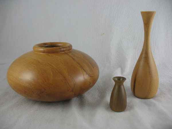 3 NZ KAURI CONTEMPORARY TREENWARE VASES. 7"d,