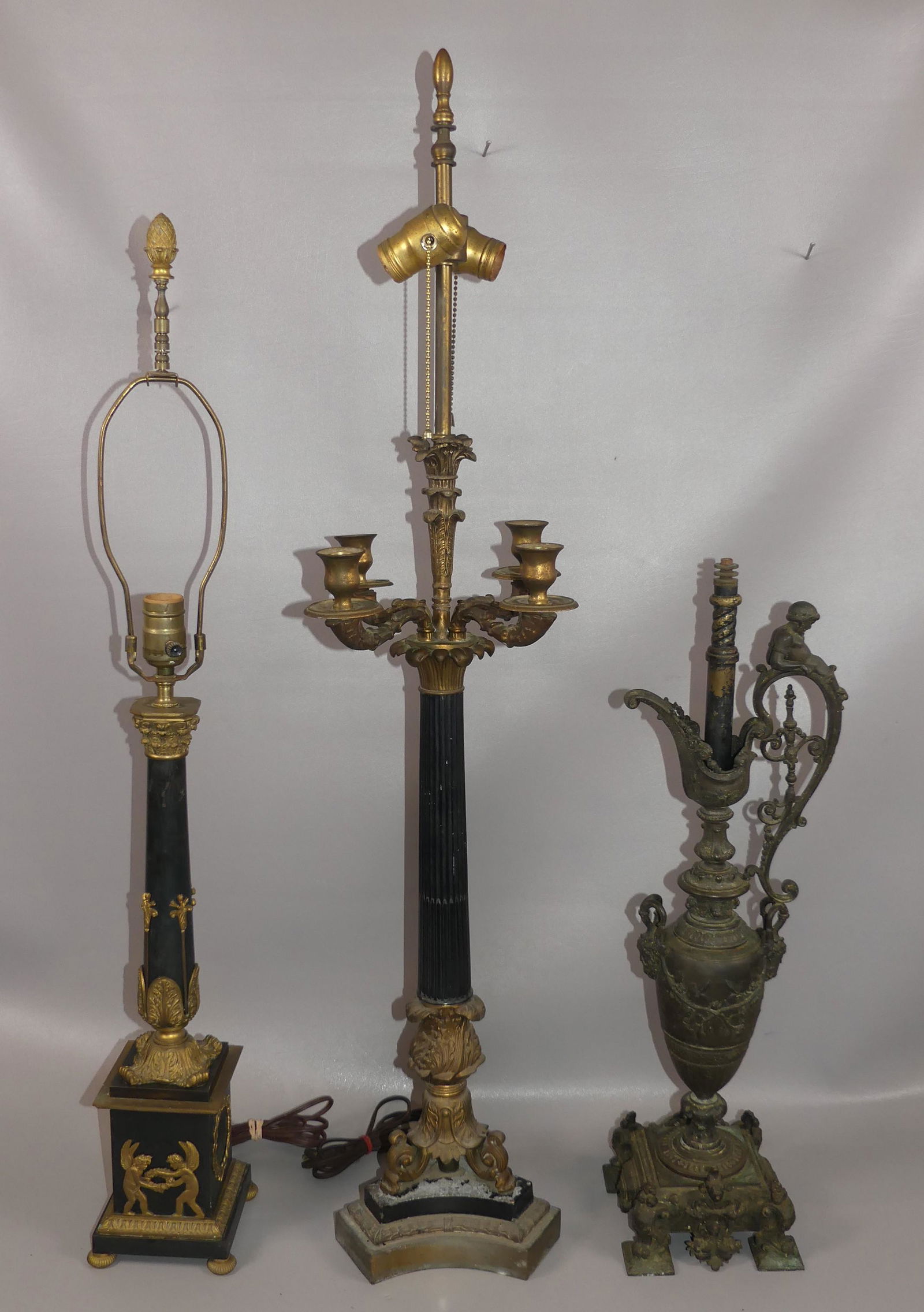 Lot of 3 Lamps, Sterling Tobacco Tin & Brass Candlestick2 days LeftLot of 3 Neoclassical Alabaster Lamps2 days Left5 pc Lot Pairpoint Bradley & Hubbard Pittsburgh Table Lamp BasesMar 01, 2026A lot of LampsMar 03, 20269 pc Lot Antique Table Lamp Bases Handel & MoreMar 01, 2026(3) ITALIAN GILTWOOD & GILT METAL CANDLESTICK-FORM TABLE LAMPS2 days LeftThree Pair Handsome French Empire Gilt Bronze Candelabra & CandlesticksFeb 28, 2026Set of Three French Belle Époque Style CandelabrasFine Pair of Late 19th Century Ormolu Ewer Form Table Lamps, c.1890THREE LAMPS 19th CenturyMar 04, 20263 cast iron base lampsMar 09, 20263 Brass Table LampsMar 03, 2026THREE LAMP BASES 19th CenturyMar 04, 2026THREE BRASS FLUID LAMPS 19th Century Heights from 3.75" to 8.5".Mar 04, 2026THREE METAL LANTERNS 19th Century Heights from 5.25" to 6.75".Mar 04, 2026A Neoclassical style gilt bronze three-light boulliotte table lamp with adjustable tole shade2 days Left