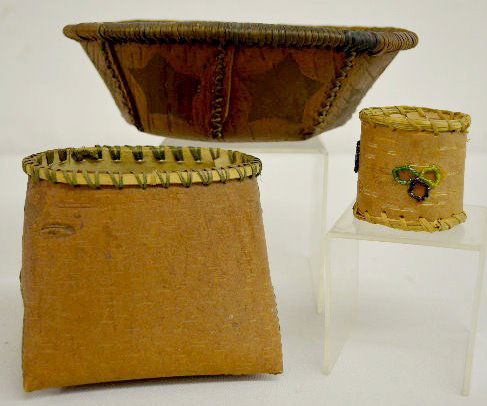 3 Old Native American Birch Bark Items