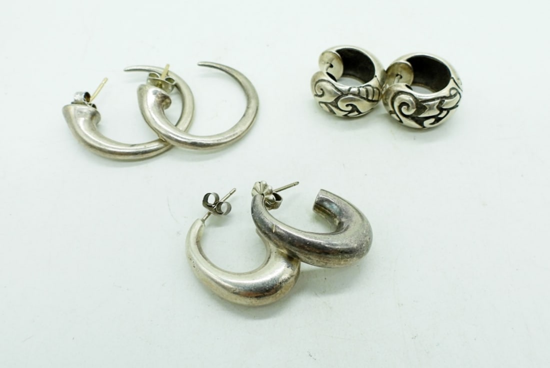 (3) PAIR VTG STERLING PIERCED EARRINGS