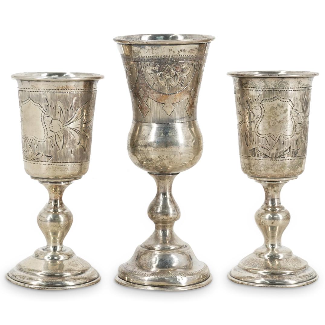 (3 Pc) Antique Russian Silver 84 Goblet Cups Set