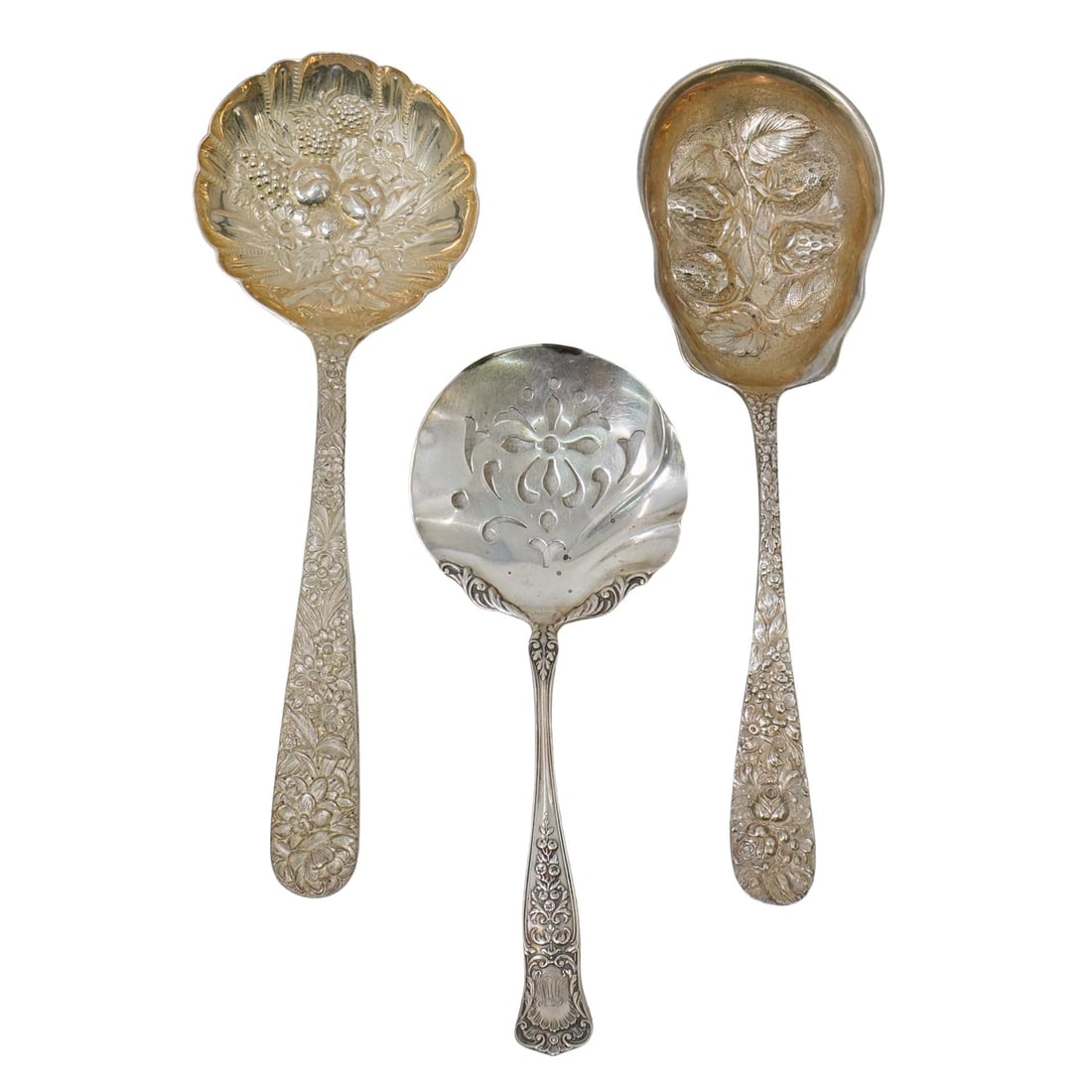 (3 Pc) Antique Sterling Silver Serving Spoons