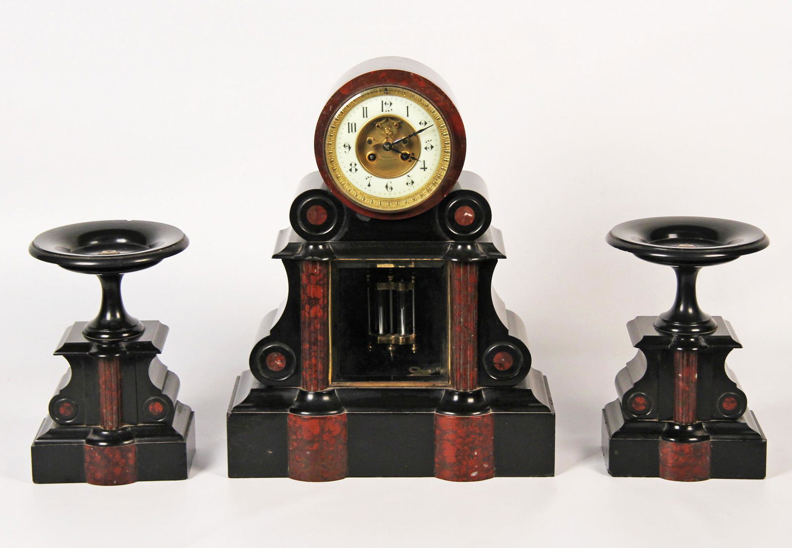 3 pc. French marble clock set, late 19th c.