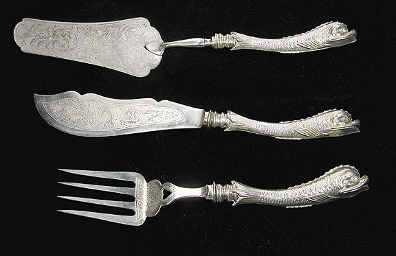 3 Pc Germ. Silver/Gilt Wash Dolphin Serving Set