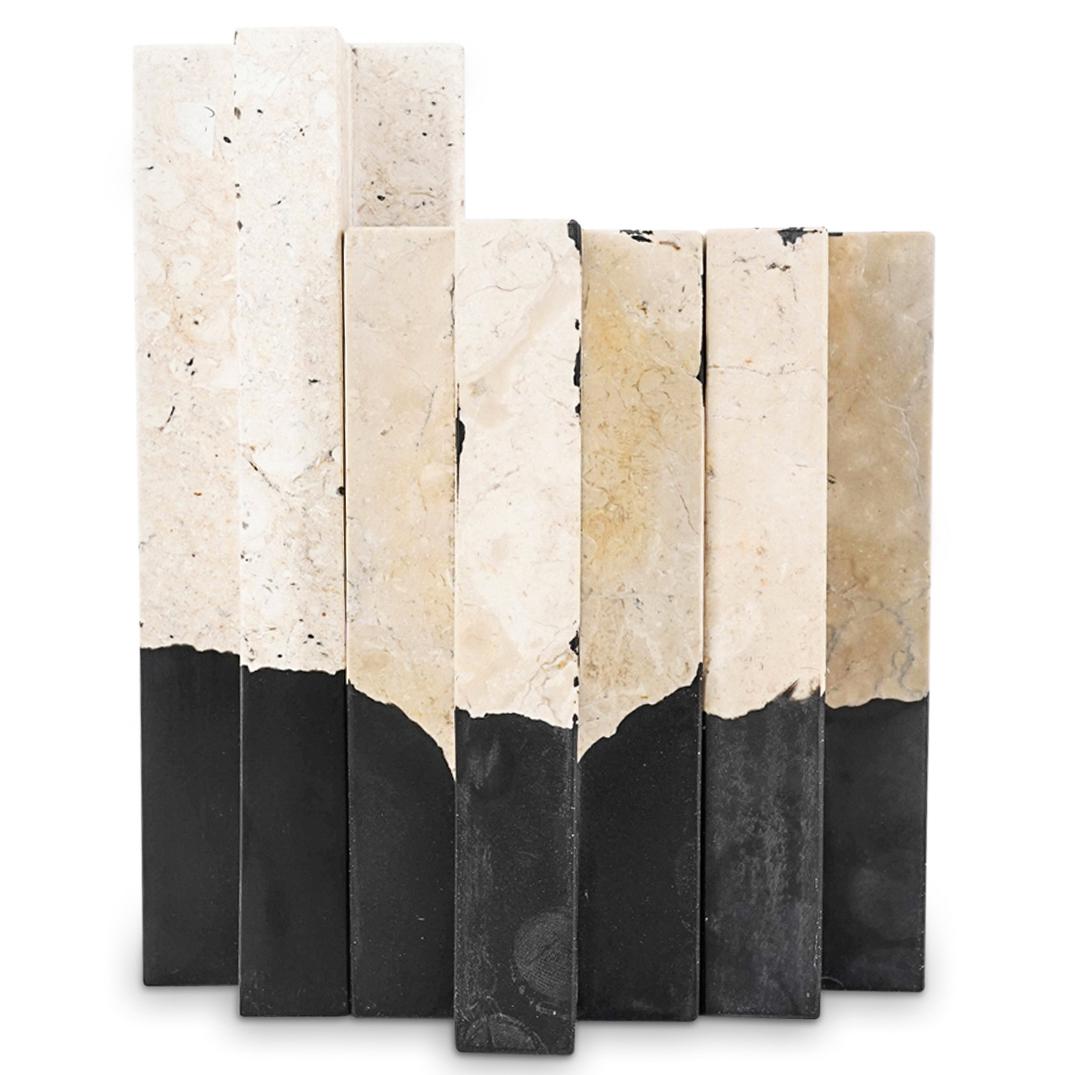 (3 Pc) Italian Travertine Designer Candlestick Set