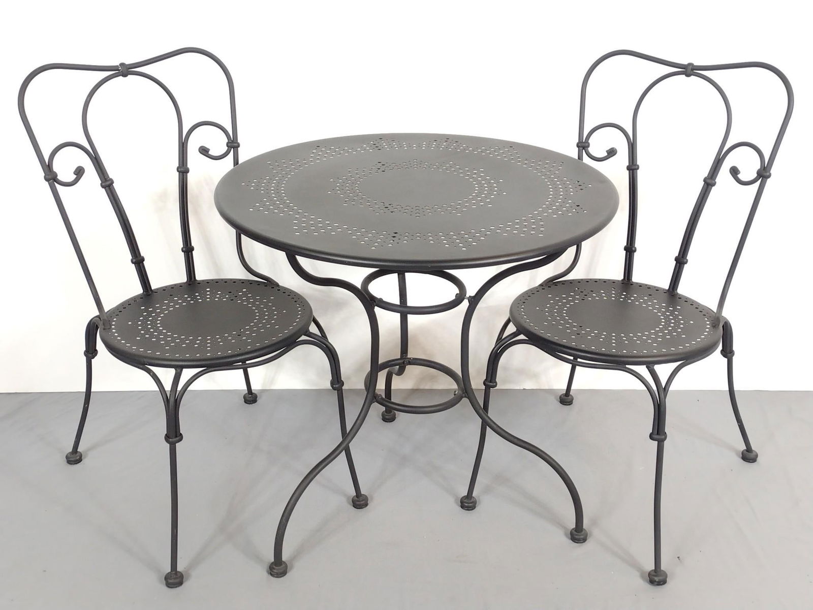 Sold3pc. French Bistro Set table, 23pc. French Bistro Set table, 2 chairs28"H, 38 1/2" diam. / 34 1/4"H, 20" x 23 1/2" ea.See Sold Price