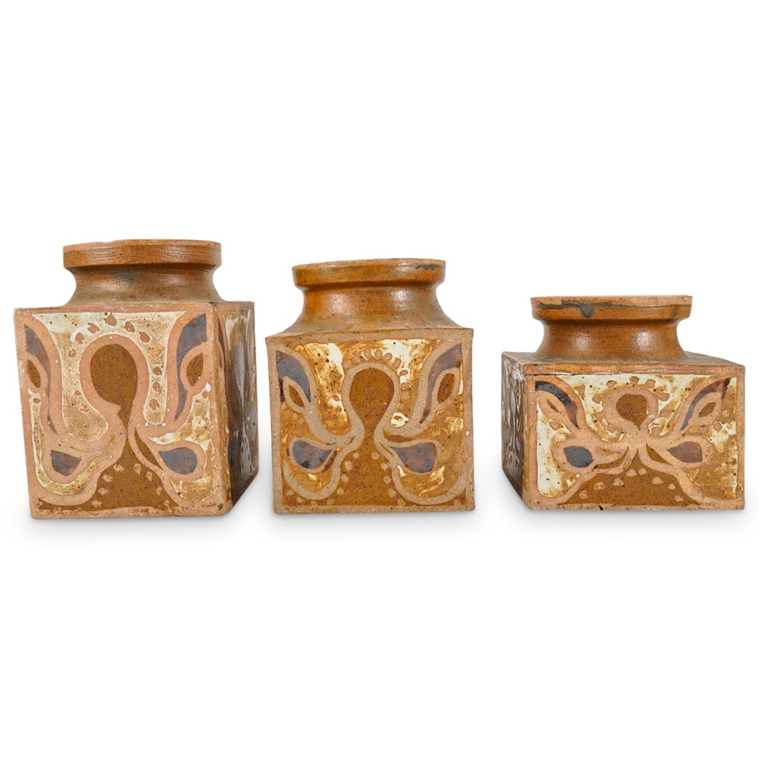 (3 Pc) Signed Studio Pottery Graduating Stoneware Jars