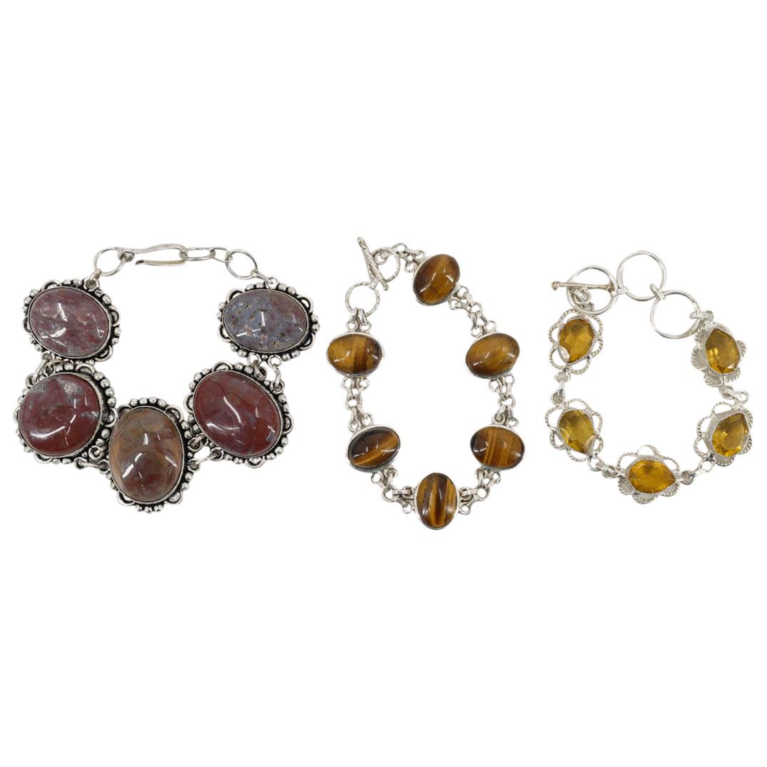 Vintage Lot of 3 Sterling Silver Bracelets with Semi Precious Gems