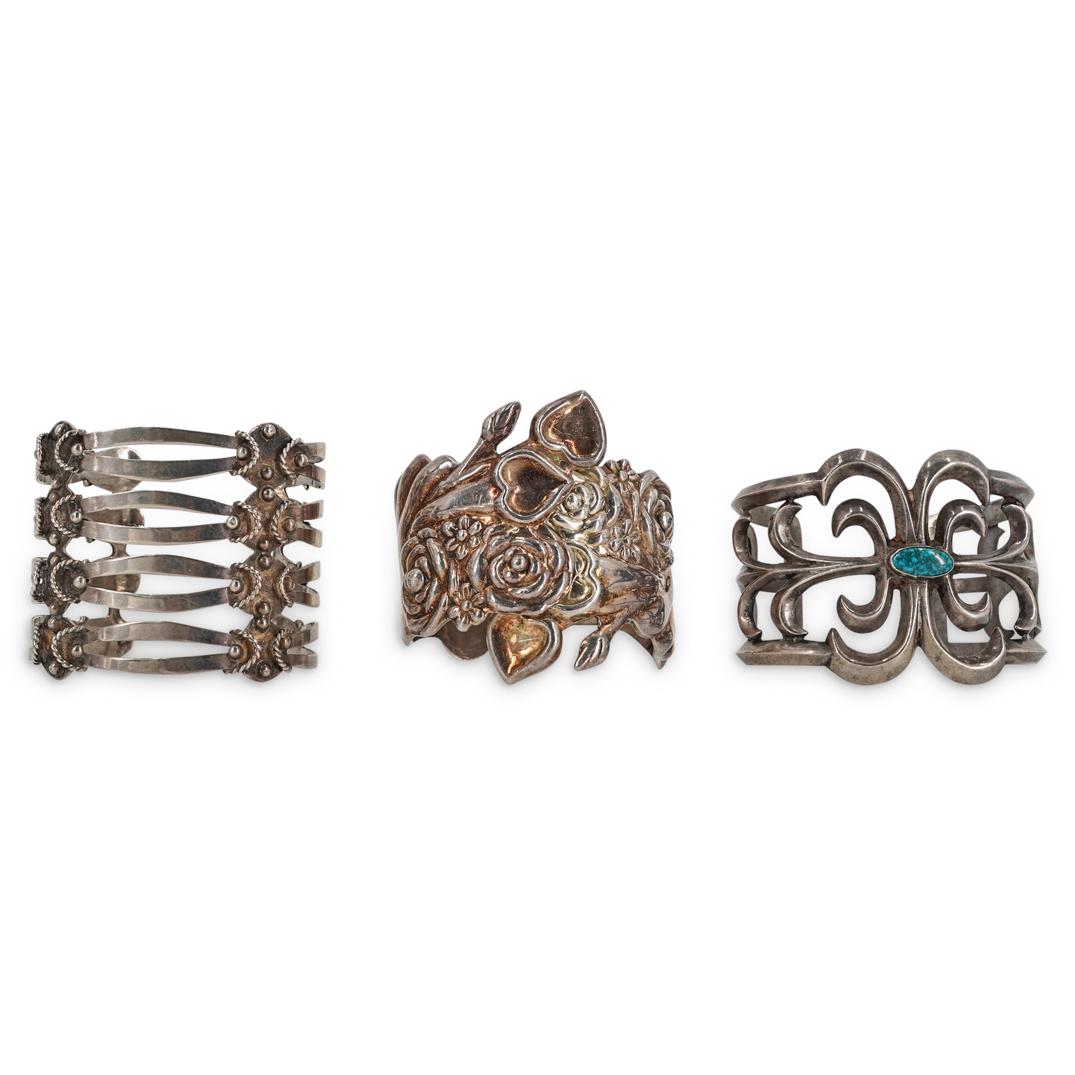 (3 Pc) Vintage Sterling Silver Cuff Bracelets