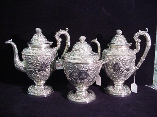 3 PCs AE WARNER Repousse Chased Coin Silver Coff