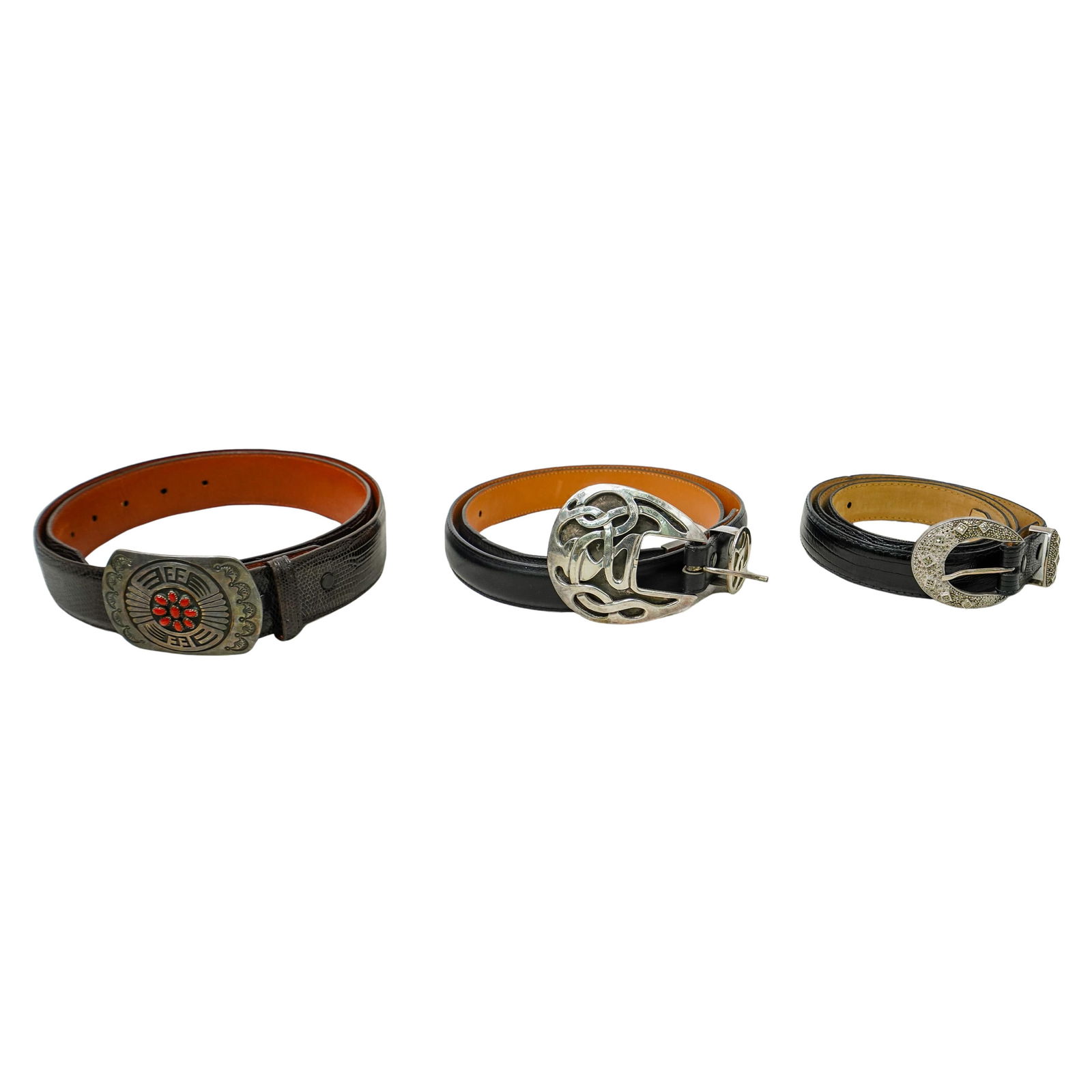 (3 pcs) Assorted Sterling Silver and Leather Belts