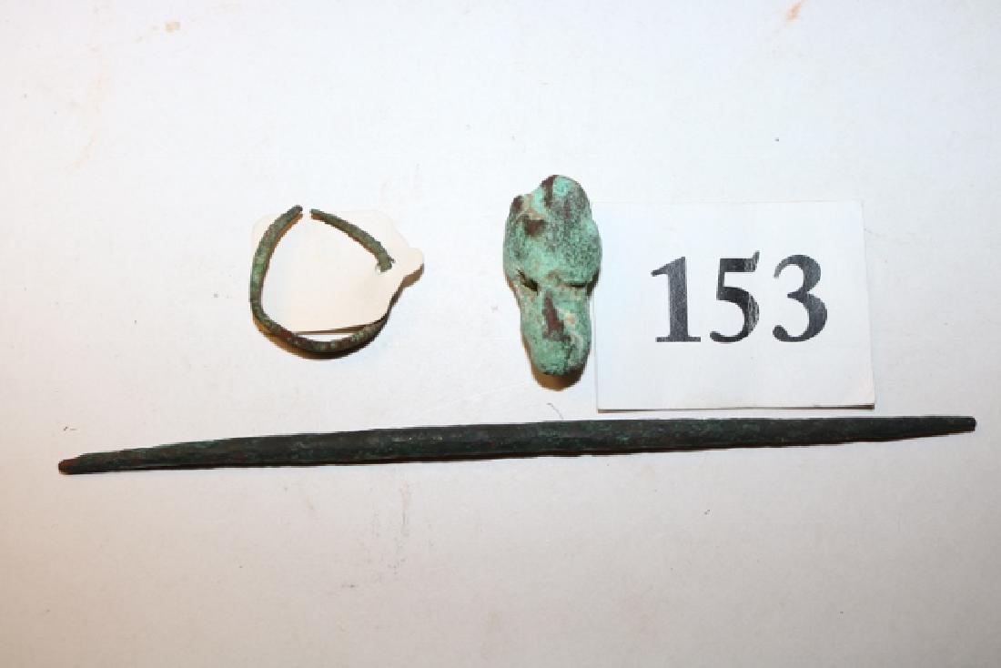 Lot of 3 bronze antiquities including a Roman coin, Egyptian figure, and a horse with broken leg.Tremont Auctions4.6(313)$100Mar 01, 2026
