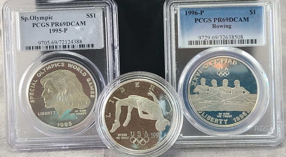 LOT OF AMERICAN MORGAN SILVER COINS GRADED BY PCGSMar 08, 2026LOT OF TWO US SILVER PEACE DOLLARS GRADED BY PCGS ICGMar 08, 2026Lot of (3) NGC MS69 American Silver Eagles (2002, 2003, 2004) - $1 SilverMar 12, 2026Lot of 3 Silver Dollars, 1881-S PCGS MS-64, 1884-O PCGS MS-63, 1921 NGC MS-64Mar 28, 2026Lot of 3 Silver Dollars, 1881-S PCGS MS-64, 1884-O NGC MS-64, 1921 NGC MS-64Mar 28, 2026Lot of 4 Silver Dollars, 1881-S PCGS MS-64, 1884-O PCGS MS-63, 1885-O PCGS MS-64, 1921 NGC MS-64Mar 28, 2026United States Silver QuartersMar 20, 2026LOT OF AMERICAN SILVER COINS GRADED BY NGC ANACSMar 08, 2026Grouping of Various Graded United States Silver Half Dollar CoinsMar 20, 20262023 US SILVER COINS PF 70 ULTRA CAMEO GRADED BY NGCMar 08, 2026PCGS 1984-W Olympic $10 Gold Ten Dollar Commemorative PR69DCAMMar 11, 2026PCGS 1992-W Olympic $5 Five dollar Gold Proof Commemorative PR70DCAM Deep Cameo2 days Left1984-P/D/S Olympic Commemorative Silver Dollar Set OGP (3-coins)Mar 11, 20261984-P/D/S Olympic Commemorative Silver Dollar Set OGP (3-coins)Mar 11, 20261996-D Olympic Silver Commemorative Dollar MS69 PCGS 90% Silver11 hrs Left$1 (Silver) - 1995-P $1 Gymnastics PCGS PR69DCAMMar 15, 2026
