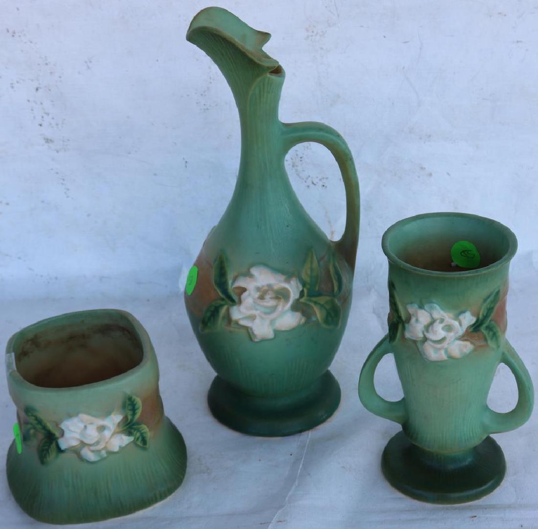 3 PCS ROSEVILLE POTTERY "GARDENIA" PATTERN