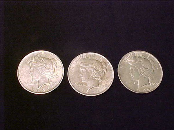 3 PEACE SILVER DOLLAR DOLLARS 1922 1924