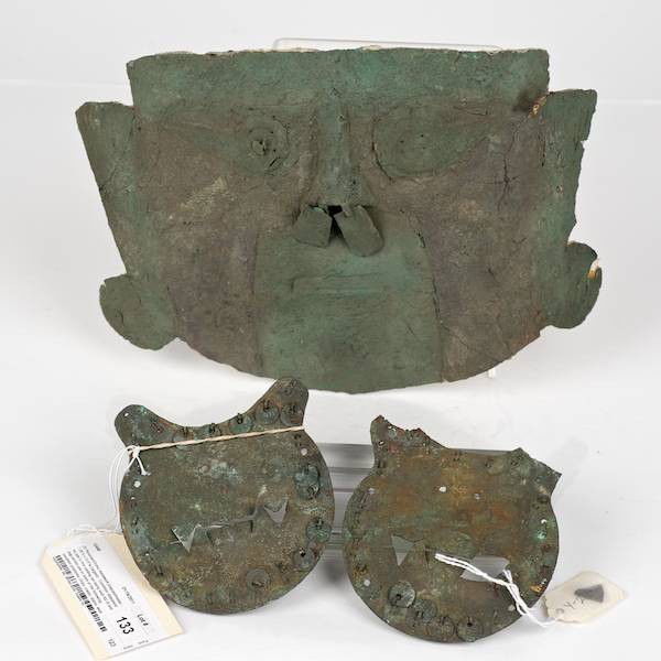 (3) Peruvian/Chimu metalwork plaques/masks