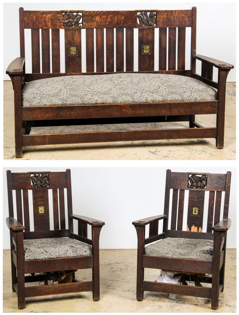 A Pair of Chinese Huanghuali and Mixed Hardwood Yokeback Armchairs, Nanguanmaoyi 18th-19th century5 days LeftOutstanding antique quarter sawn oak, two piece Parlor Set that matches the previous lot, in fineMar 28, 2026Antique Carved Spindle Back Upholstered Chairs, companion to lot 204 - 18"x17"x33" - NOTMar 29, 2026Outstanding antique quarter sawn oak, three piece Parlor Set in fine condition, all with matchingMar 28, 2026GUSTAV STICKLEY (1858-1942) OAK FLAT-ARM 'MORRIS' CHAIR, MODEL 332Mar 27, 2026PAIR OF FRENCH OAK LOUNGE CHAIRS WITH LOOSE CUSHIONS AND TURNED ELEMENTS C 1960.6 days LeftArts & Crafts Symbolist Tiger Oak Bench Settee7 hrs LeftPAIR NINETEENTH CENTURY CARVED MAHOGANY FRENCH RESTORATION OPEN ARM CHAIRS.5 days LeftPair of English Elmwood Windsor ArmchairsMar 28, 2026PAIR OF LOUNGERS BY ANGEL PAZMINO FOR MUEBLES DE ESTILO2 days LeftArts & Crafts Period Hand-Carved Pyrography Fallfront Desk & Chair c19053 days LeftSuite of Six Renaissance Revival Oak Dining Chairs1 day LeftFour Federal Mahogany Dining ChairsMar 27, 2026ARTS AND CRAFTS THREE PIECE OAK SET INCLUDING A SETTEE, ROCKING CHAIR AND ARM CHAIR C 1910.5 days LeftSet of Two Mission Oak Cottage Armchairs in Arts and Crafts Style1 day LeftAntique Chippendale Mahogany Chairs2 days Left