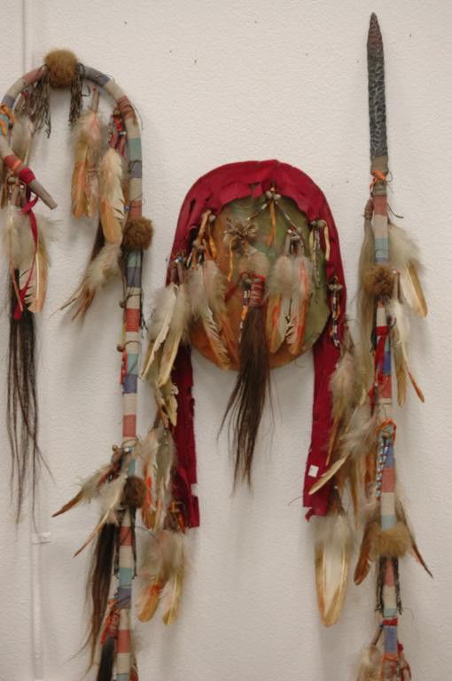3 Piece Plains Indian Lance, Dance Stick, Shield
