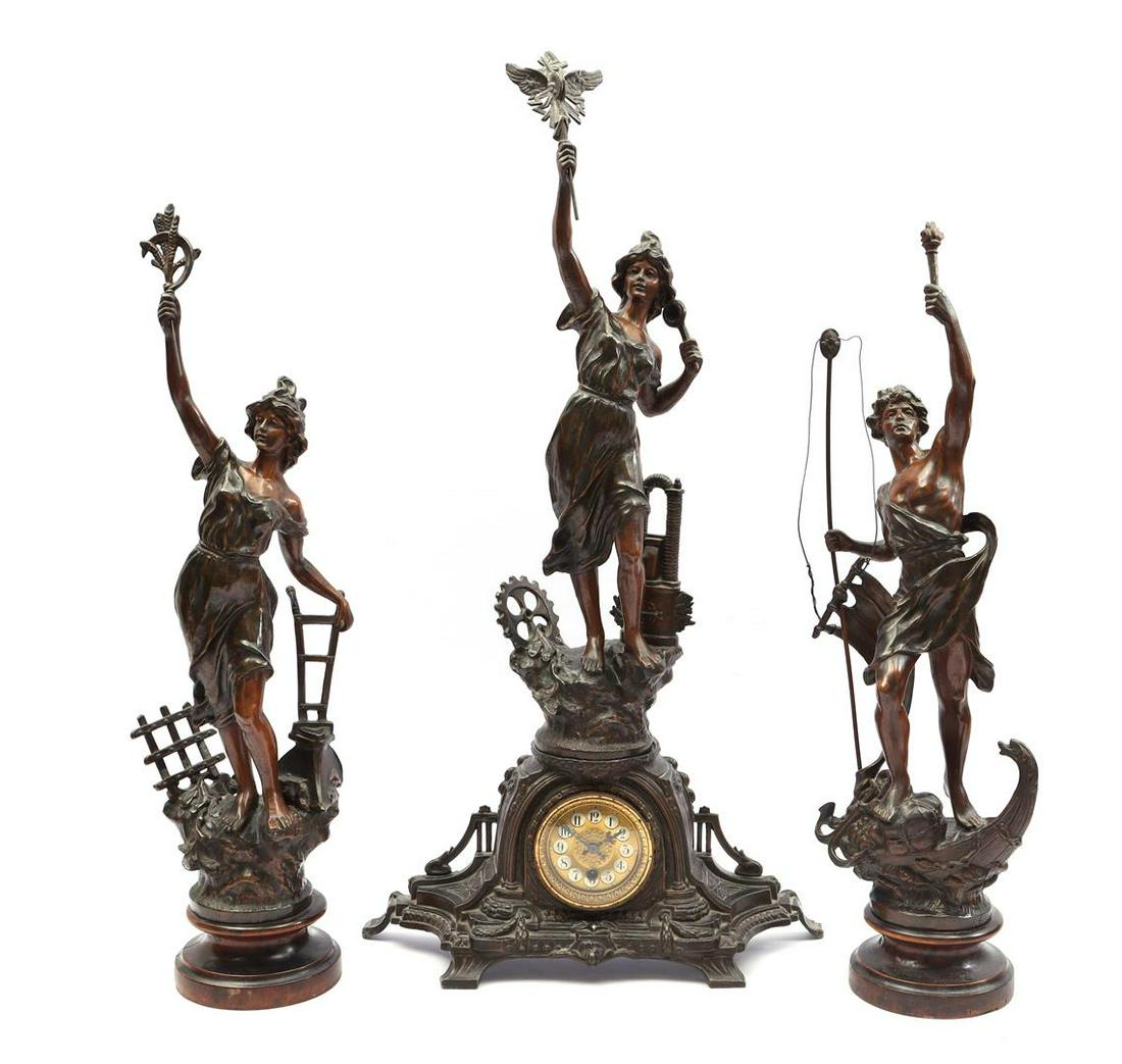 A lot of four German Volkstedt various animated porcelain figural groupsFeb 24, 2026A lot of three German Sitzendorf and Passau variously decorated porcelain figuresFeb 24, 2026(3) EMPIRE STYLE BRONZE & MARBLE MANTEL CLOCK & CANDELABRA GARNITURE SETFeb 22, 2026Antique Art Nouveau Brass Ornate Mantle Clock and 2 Candelabras - Garniture SetAntique French Louis XVI Style Albert Ernest Carrier Belleuse Figural Clock and 2 Candelabras -3 Vintage Brass Ceramic Giraffe Owls BellsJul 10, 2025French neoclassical style pendulum clock set, marked on the dial Carlos Lefebvre à Lille, clock5 days LeftWomen Carrying Urn Bronze Mantel ClockFeb 27, 2026(3 pcs) Louis XVI Style Franz Hermle German Clock and Candelabras GarnitureFeb 17, 2026Antique 3 Piece French Brass Clock Set with CandelabrasMar 01, 2026A three piece clock and candelabra garniture set1 day LeftFrench Figural Gilt Bronze Mantel Clock and Candelabra Garnitures4 days LeftLouis XVI Style Gilt Bronze Mounted Blue Turquin Marble Three Piece Clock Garniture Paris Circa 18754 days LeftClassic Bronze Figural Clock with Maiden and Harp on Marble BaseFeb 23, 2026Pr French Style Bronze & Marble Figural CandelabrasFeb 25, 2026A collection of two aneroid table barometers and a compendium mantel clock