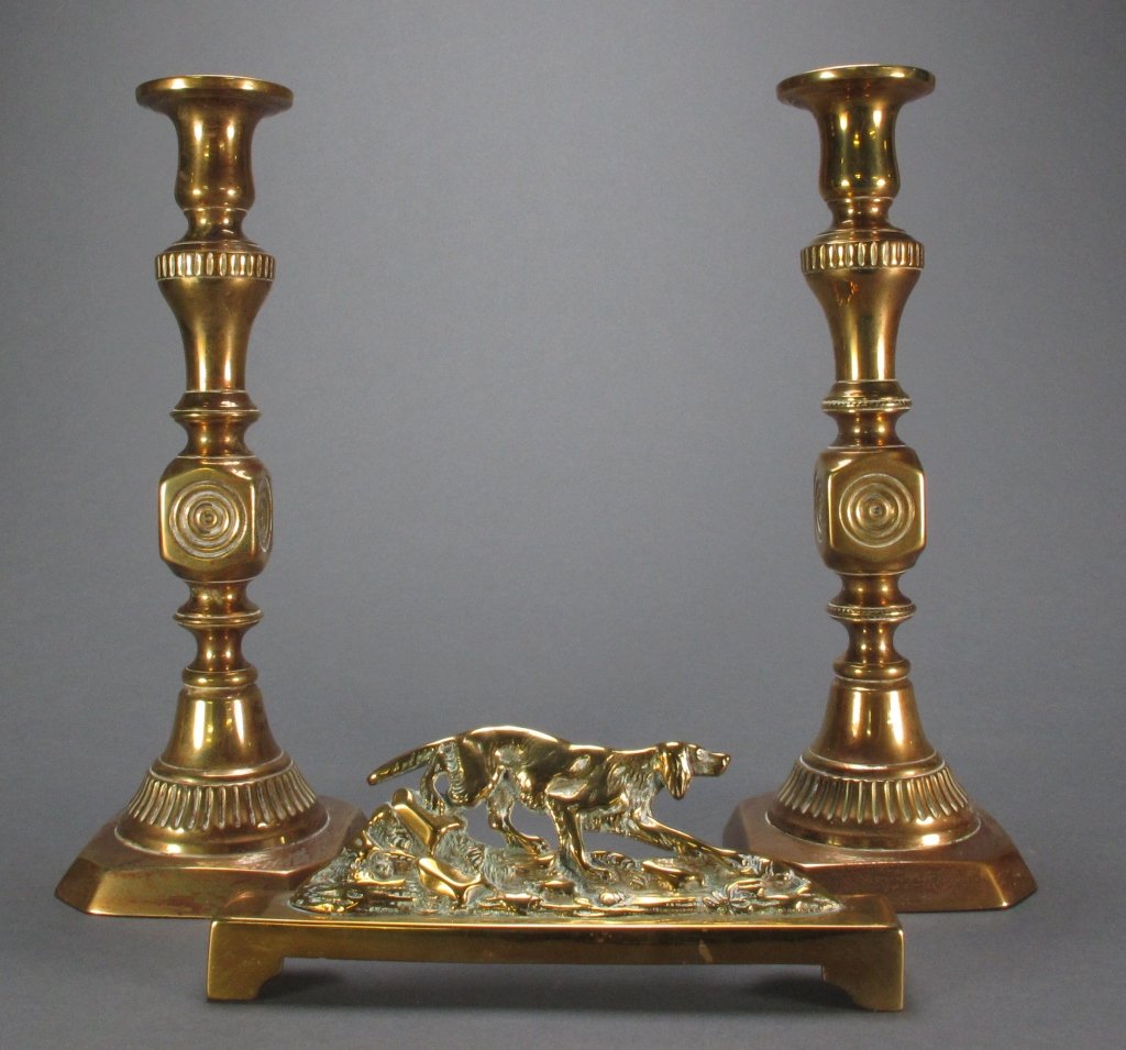3 Pieces Brass, Doorstop Candlesticks