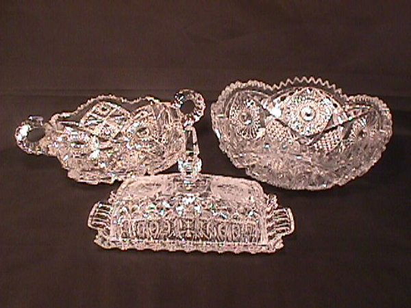 3 PIECES CUT CRYSTAL PRESSED GLASS