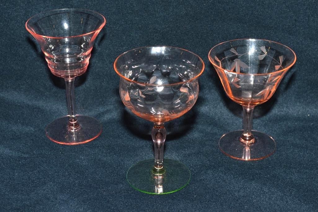(3) Pink Depression Stemmed Wine Glasses