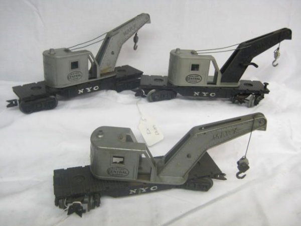 SoldMARX 4045 ARMY TRAIN SETO ga, 400 loco, green plastic, NYC tender, black, 3 flat cars, green, 5 Marx vehicles, silver plastic, crane, log car, obsv, transformer, orig set box w/dividers, orig set box minor wear, C8.See Sold Price