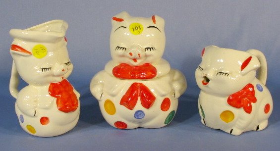 3 Polka Dot Pig Pottery Items
