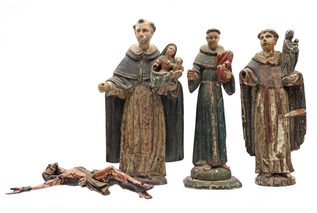 6PC LOT OF RELIGIOUS ITEMSMar 07, 2026Lot of 3 Wooden and Resin Figures8 hrs LeftA lot of two religious carved oak sculptures of two standing SaintsFeb 24, 20263 Eduardo Vega, 1 Other Ceramic Figural SculpturesFeb 26, 2026SPANISH COLONIAL STYLE CARVED SANTO FIGURES, MARY & NOSSA SENHORA APARECIDEFeb 20, 2026A Collection of Five Spanish Colonial Polychrome Wood Santos FiguresMar 07, 20262 18th century wooden statues, folk art, original polychromy3 days LeftTwo carved and polychrome wood decorated processional figures Southern European, perhaps Spanis...An antique religious figural sculpture in polychrome patinated carved woodFeb 24, 2026Two Antique Wooden Figures of St. Nil StolobenskyFeb 25, 2026Two Spanish Colonial santos figuresFeb 21, 2026Two similar Continental carved and polychrome wood decorated processional figures Southern Euro...A GROUP OF THREE NEAPOLITAN CRECHE FIGURES, LATE 18TH TO EARLY 19TH CENTURY6 days LeftAttributed to Bernardo de Legarda, 3 figures of the Calvary, carved, polychrome and gilded wood with9 hrs LeftPolychrome wooden statue with two praying children in a barrel, original polychromy, 18th century3 days LeftGroup Spanish Colonial Carved Santos figures Feb 27, 2026