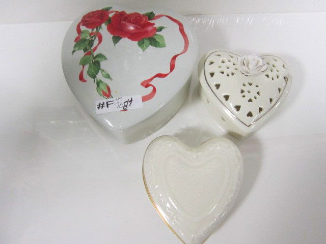 3 porcelain heart shaped trinket boxes