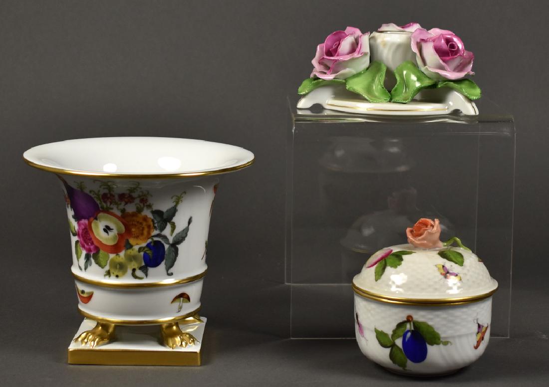 COLLECTIBLE RELIGIOUS & FLORAL PORCELAIN LOT2 hrs LeftEstate Lot Cobalt Cobalt Urn Vase, 4 Porcelain de Paris Coasters & Crown Dorsett Teapot EnglandMar 15, 2026Japanese Moriyama Planter/Beswick Ware 1858/Ivory Trinket Jewelry Box Lot5 days LeftENAMEL LOT OF TRINKET BOXES PILLBOXES INCL. HEREND, LIMOGES, NEIMAN MARCUS5 days LeftA lot of three variously decorated cut crystal and opaline glass objectsFeb 24, 2026LOT OF EUROPEAN DECORATED PORCELAINFeb 26, 2026(3) ITALIAN GIALETTI MAJOLICA TABLEWARE & FRENCH PORCELAIN VASE5 days Left(32) JAPANESE PORCELAIN TEA SERVICE & CHINESE FAMILLE ROSE PLATES5 days LeftFürstenberg, Germany. Two antique lidded bowls in hand-painted porcelain with flowers and goldPair of Antique English Porcelain Floral Vases – c.1860Meissen Porcelain ItemsFeb 25, 2026VIENNA AUSTRIA PORCELAIN CREAMERS AND SUGAR BOWL5 days LeftCold War Era Vintage German Porcelain Wares - Tea Cup, Coin/Ring Dish, & Coin/Trinket Dish5 days LeftPair Meissen style porcelain potpourri urns2 days LeftMeissen Style Porcelain Teapot and Tureen, 2Mar 12, 2026Meissen, Etc. Porcelain Tableware, 5 Pcs.Mar 12, 2026
