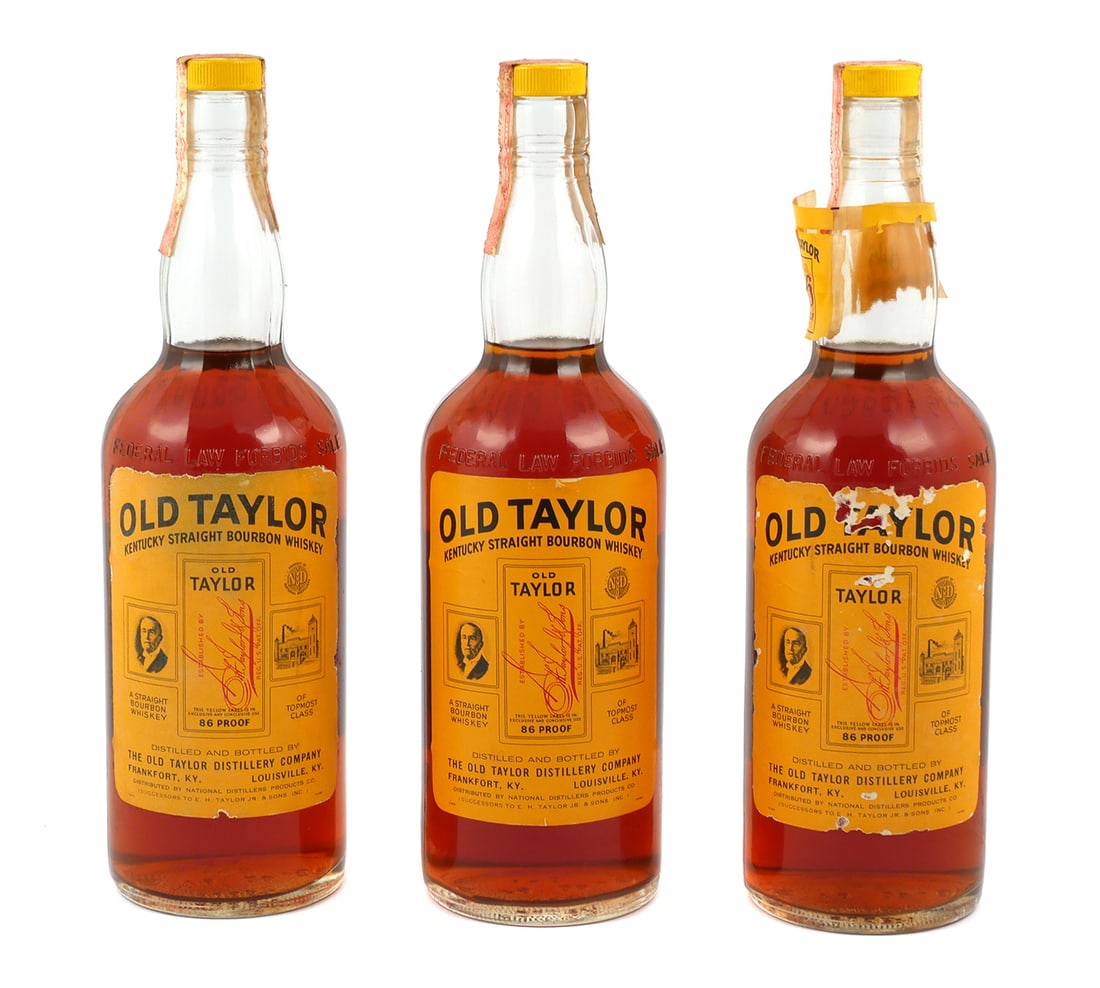 (3) Rare OLD TAYLOR Bourbon Bottles, 1960s