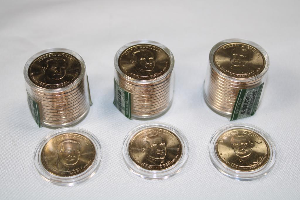 3 rolls Uncirculated $1 President Dollar