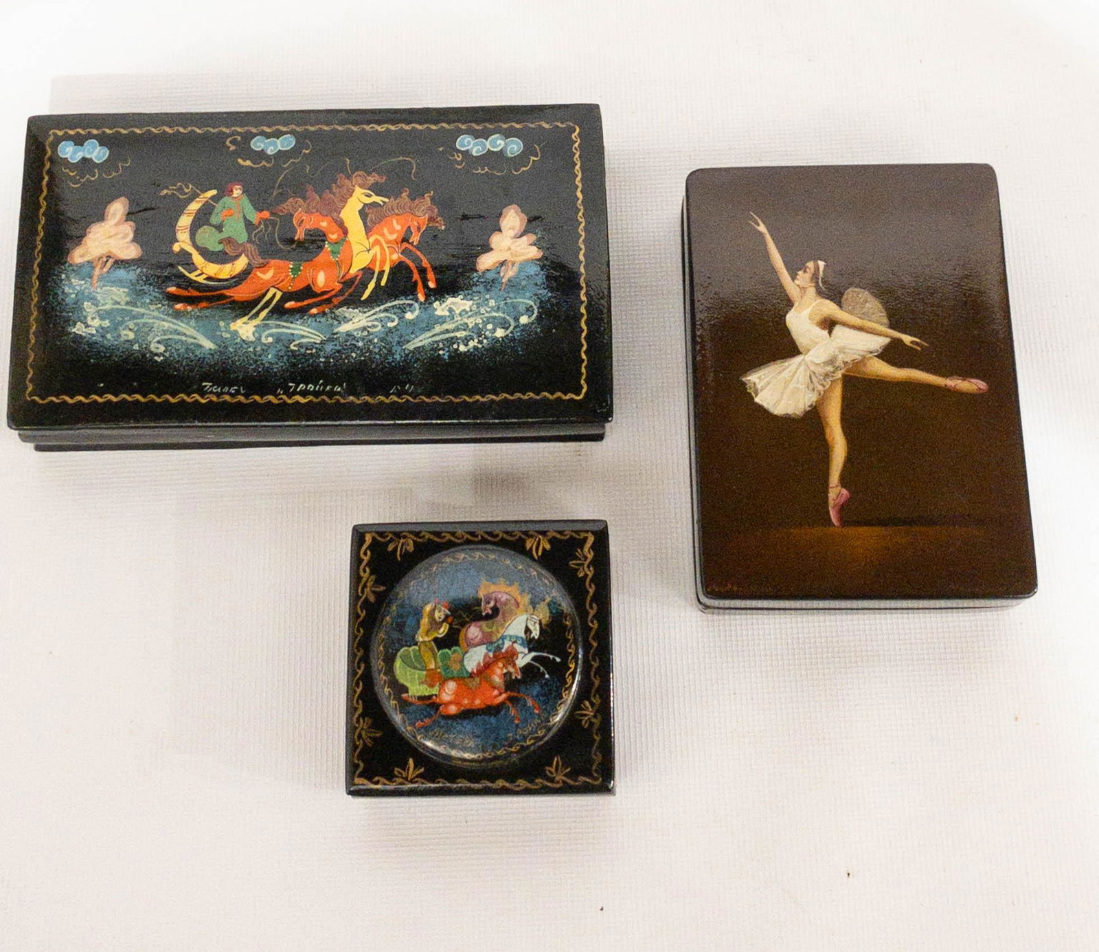 3 Russian Lacquer Painted Boxes