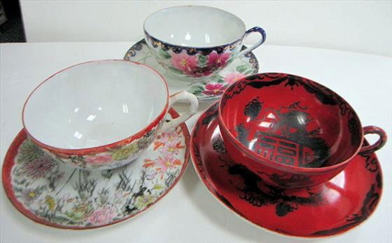 3 sets cups and saucers - Oriental style