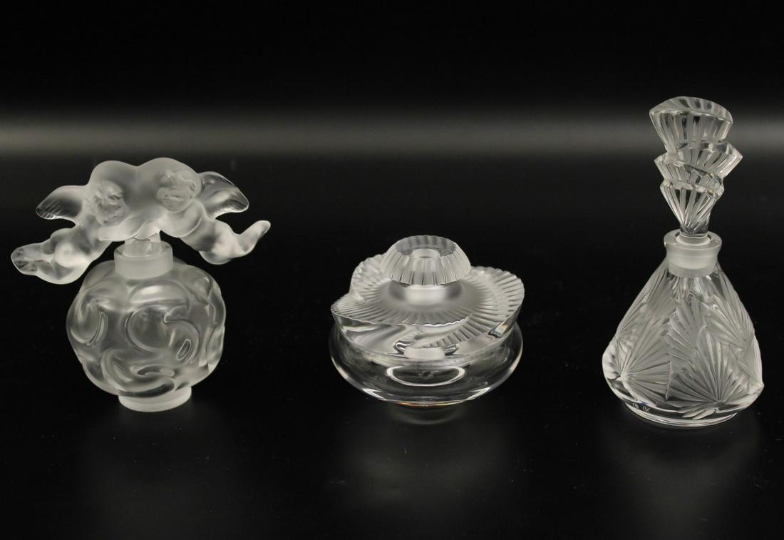 3 SIGNED LALIQUE PERFUME BOTTLES