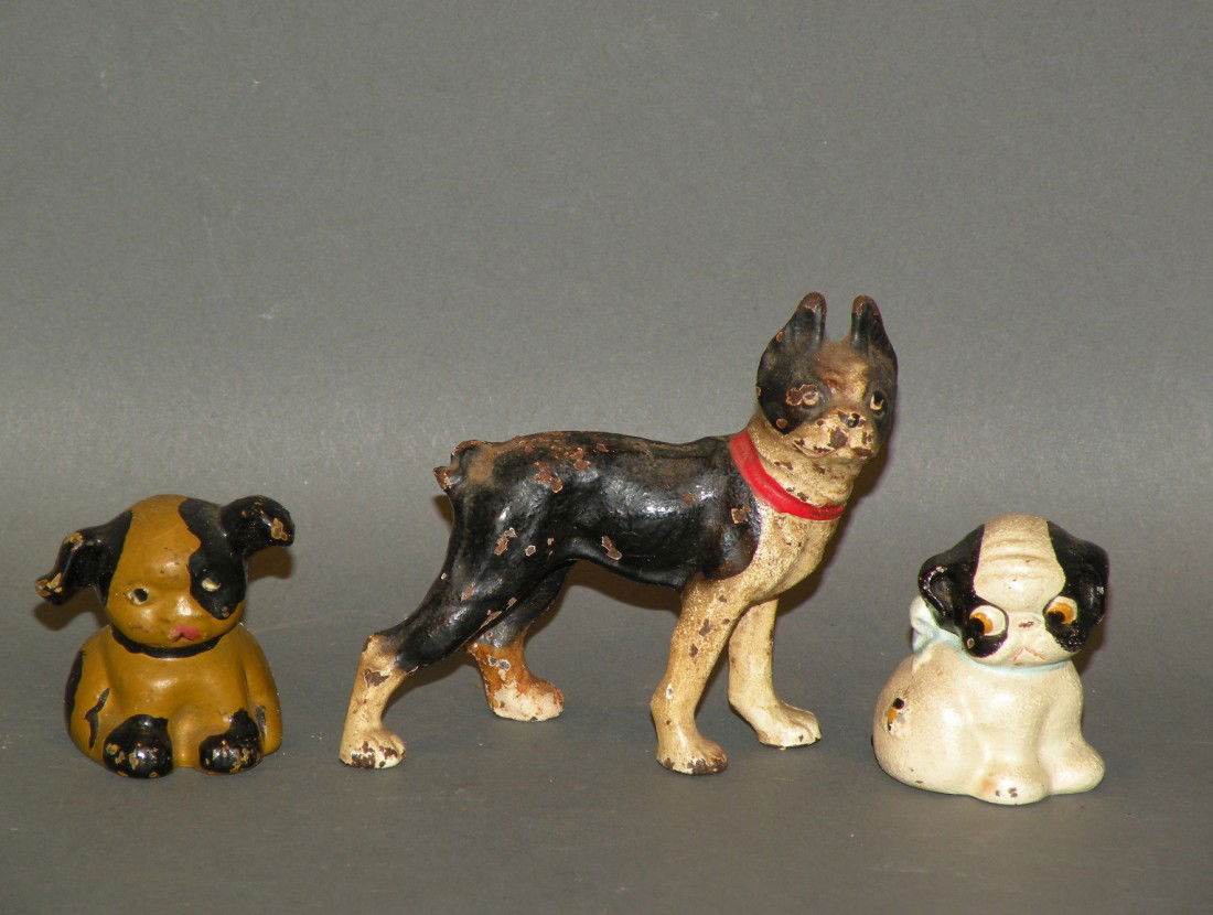 3 small cast iron paperweight dogs
