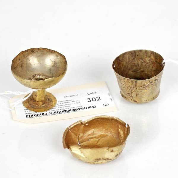 (3) small Peruvian hammered gold articles