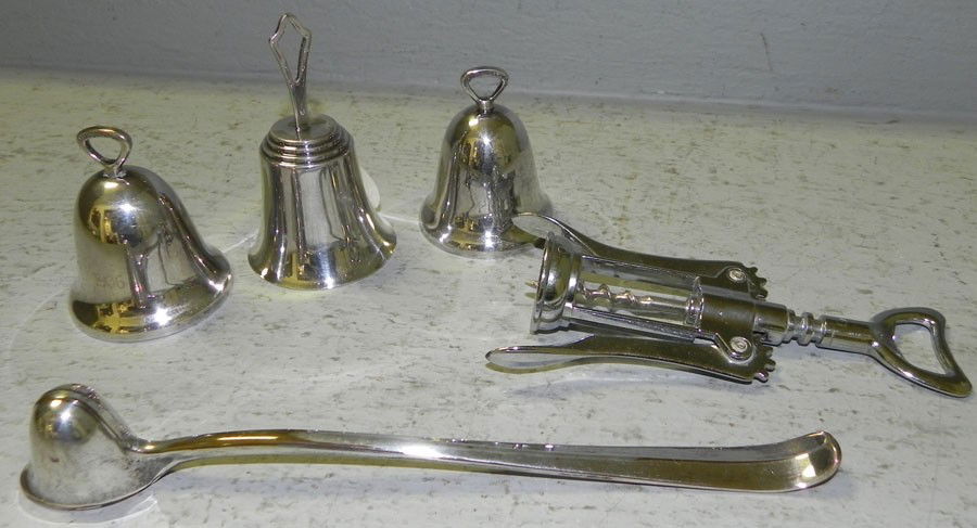 (3) SP bells, corkscrew & candle snuffer