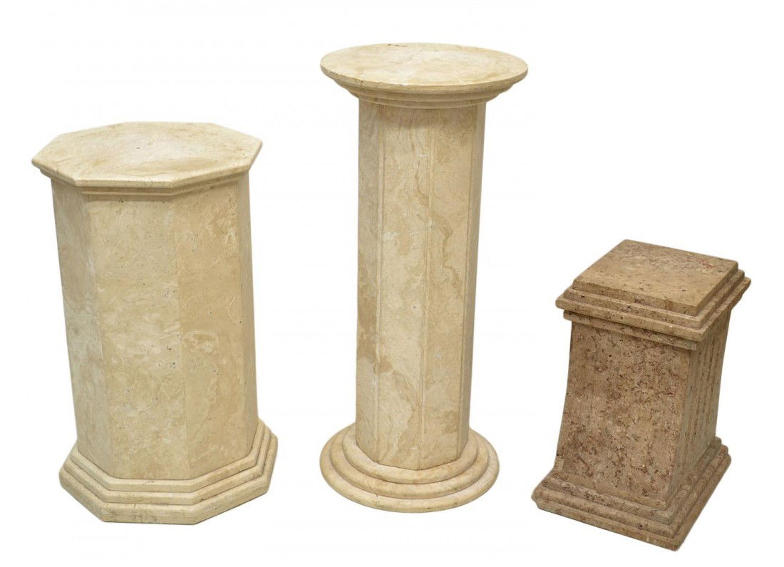 (3) STONE STORE DISPLAY PEDESTALS, STANDS