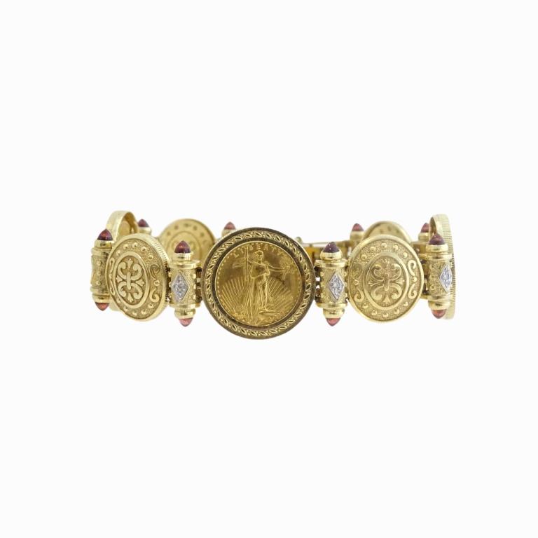 (3) Three Coin, Diamond And Ruby Bracelet