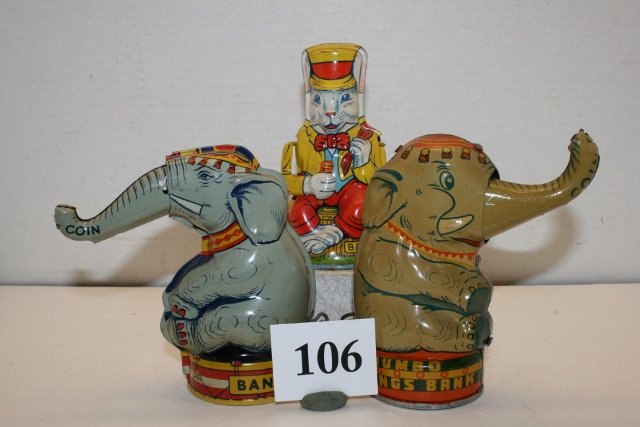 Lot of 4 Decorative Items w/Finely Sculpted Elephant Head MotifsMar 01, 2026Lot of 3 Metal Elephants19 mins LeftLOT OF BISCUIT AND CHOCOLATE TINSFeb 26, 2026Arthur Strasser - The Invincible (Elephant and Lions Group)Feb 26, 20266 Animal Form Metal Banks and 3 Toys, 9 pcs.Feb 25, 2026Three Cast Iron Clown Banks. Including a mechanical clown b...6 days LeftFour Tin Mechanical Banks13 hrs LeftTHREE LITHOGRAPHED TIN WALKER TOYSFeb 27, 2026Vintage Metal Elephants Playing Musical Instruments - Set of 3Group of miscellaneous vintage toys, banks, and souvenirs. ...6 days LeftPair of Colorful Pottery Elephant StandsFeb 28, 2026Three Stacked Lucky Elephants Bronze SculptureFeb 24, 2026THREE VINTAGE IRON MECHANICAL COIN BANK TOYSMar 01, 2026Group of Assorted Elephants figures and MoreMar 07, 2026Wildlife African Elephants Bronze StatueFeb 20, 2026PAIR BRONZE-GILT ELEPHANT DECORATIONSMar 01, 2026