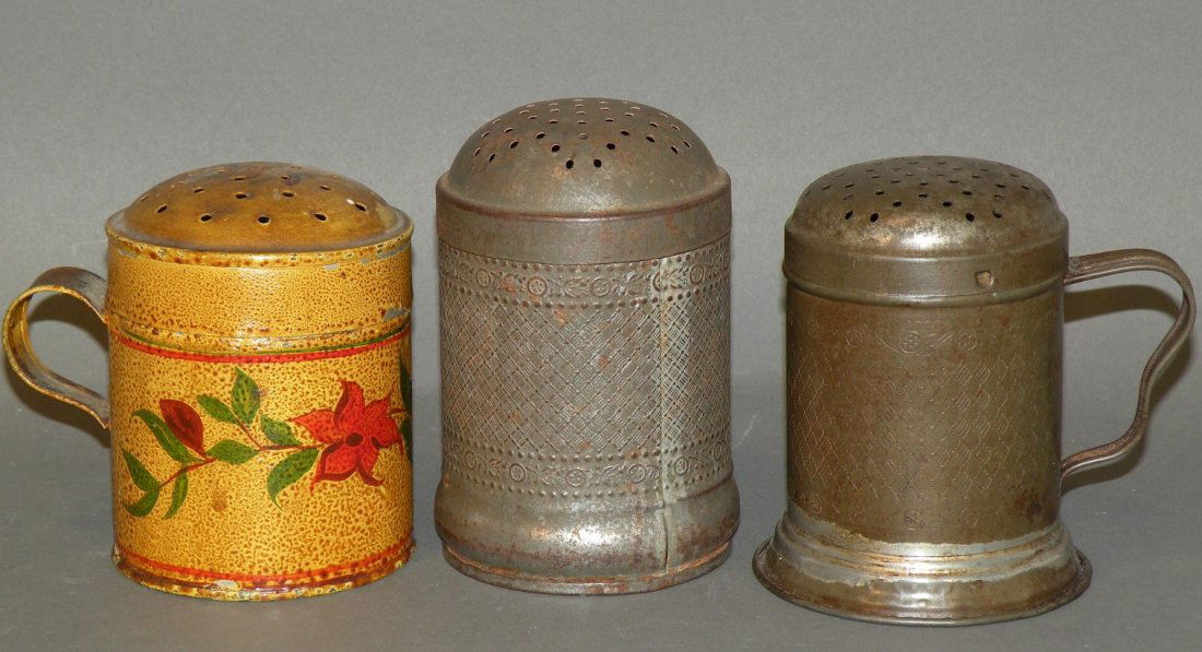 3 various tin muffineers/sugar shakers