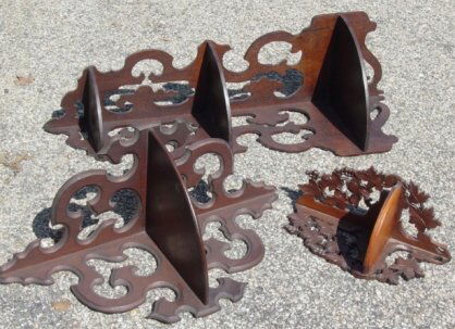 3 Victorian walnut wall shelves