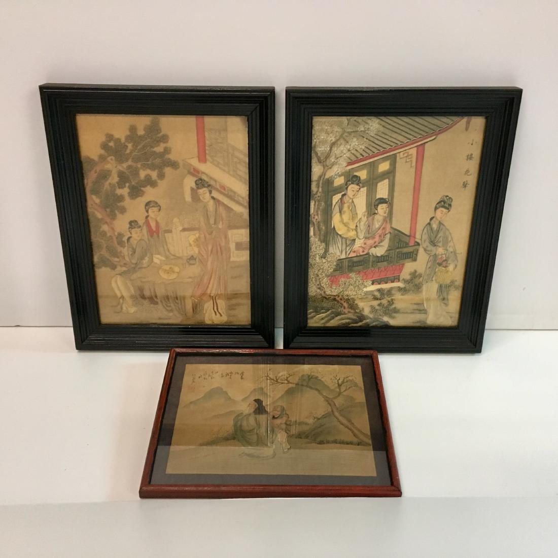 3 VINTAGE FRAMED ORIENTAL SCENE ARTWORK