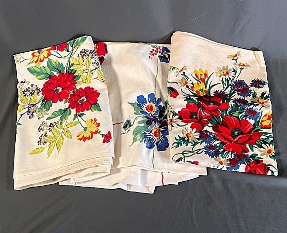 3 Vintage Printed Tablecloths - Flowers