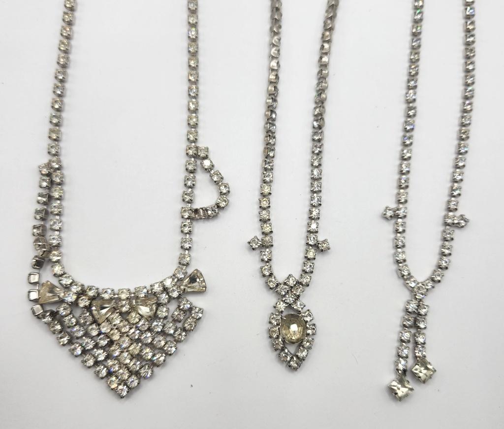 3-VTG SILVER TONED RHINESTONE NECKLACES