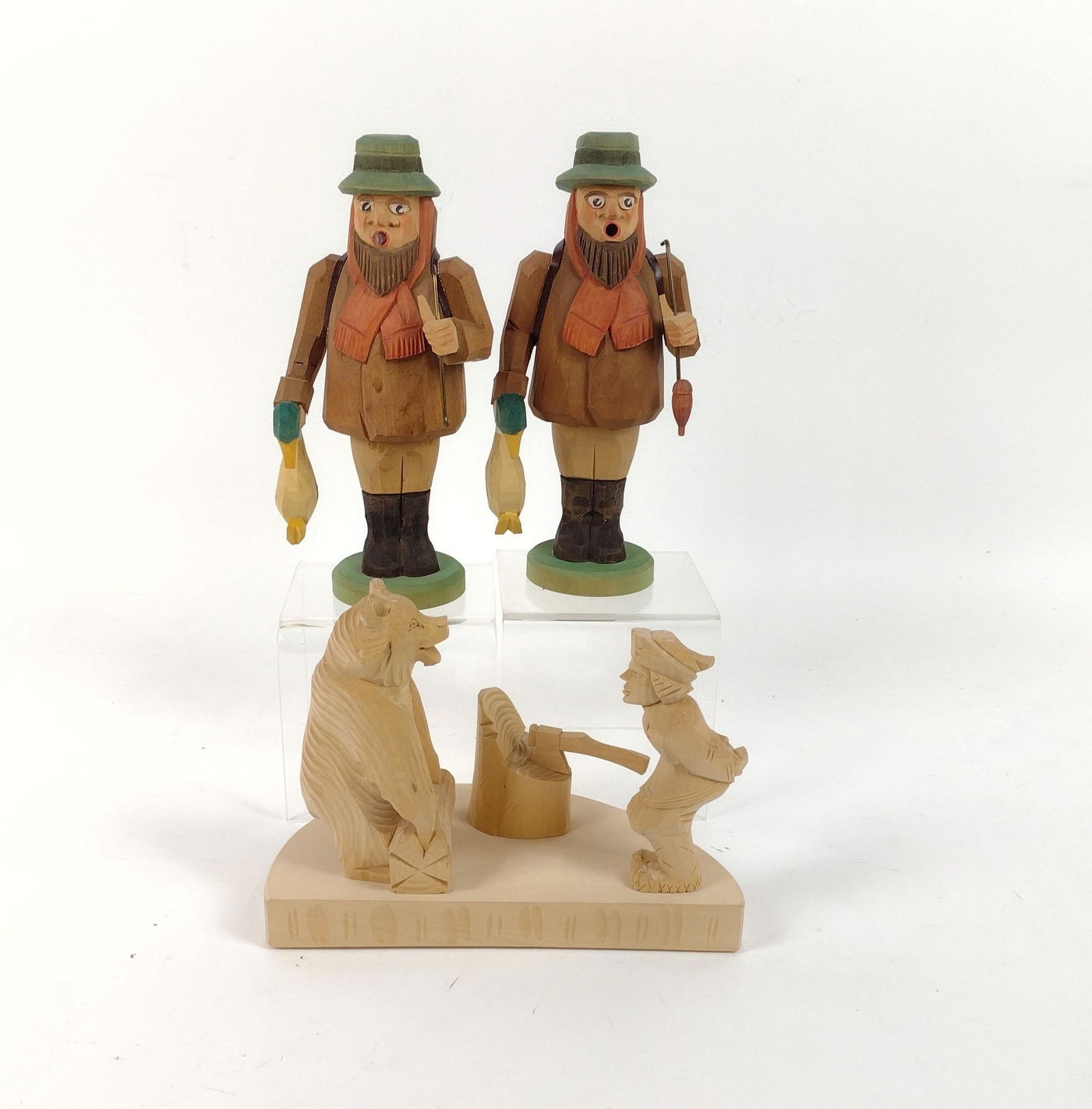 3 Wood Carved Figurines