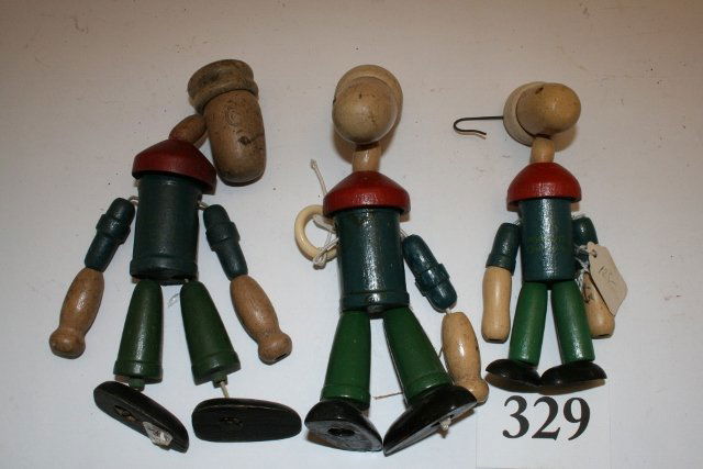 3 Wood Pop-eye String Dolls
