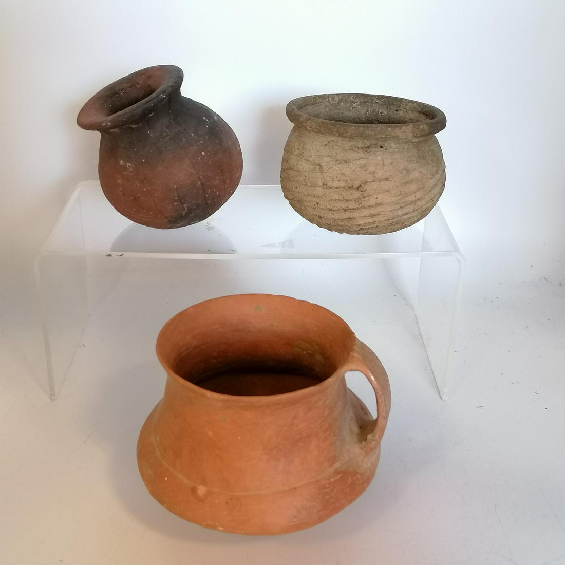 3 X Neolithic pottery vessels - largest 4½"